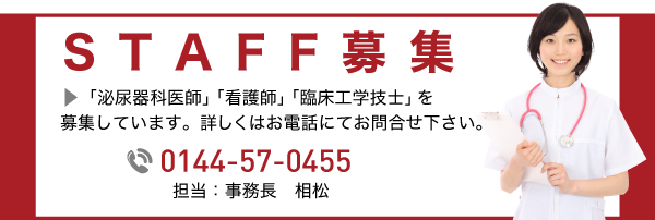 前立腺疾患・尿路結石症・尿路悪性腫瘍・尿失禁・性感染症(STD)・尿路感染症(膀胱炎、前立腺炎等)・勃起不全などの診療を行なっています。