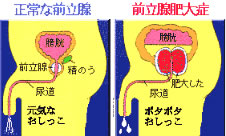 50歳以上の男性の5人に1人ぐらいがこの病気になると言われています。男性に固有の前立腺が年齢とともに大きくなり、膀胱や尿道を圧迫し、排尿障害を起こすものです。